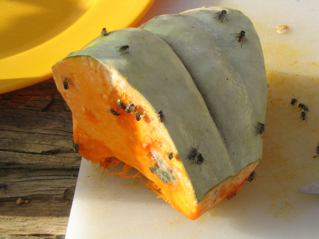 old pumpkin to put it in the stew. Yum. At least the flies go to