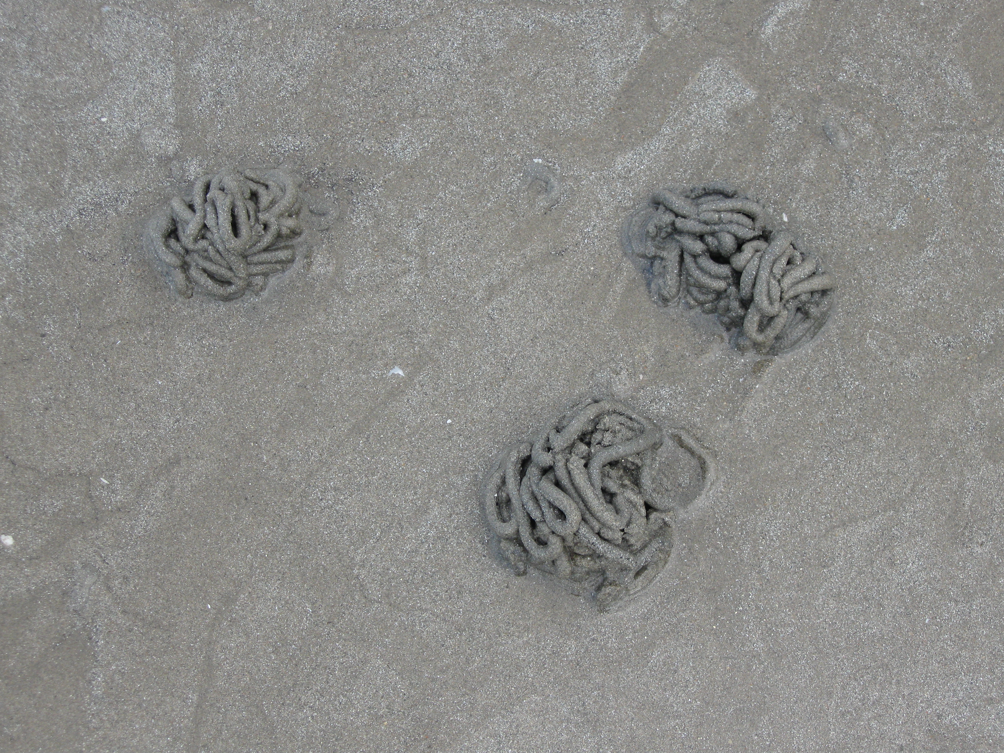 strange lumps in the sand at a distance. On closer insepection they look like strange worm things sitting