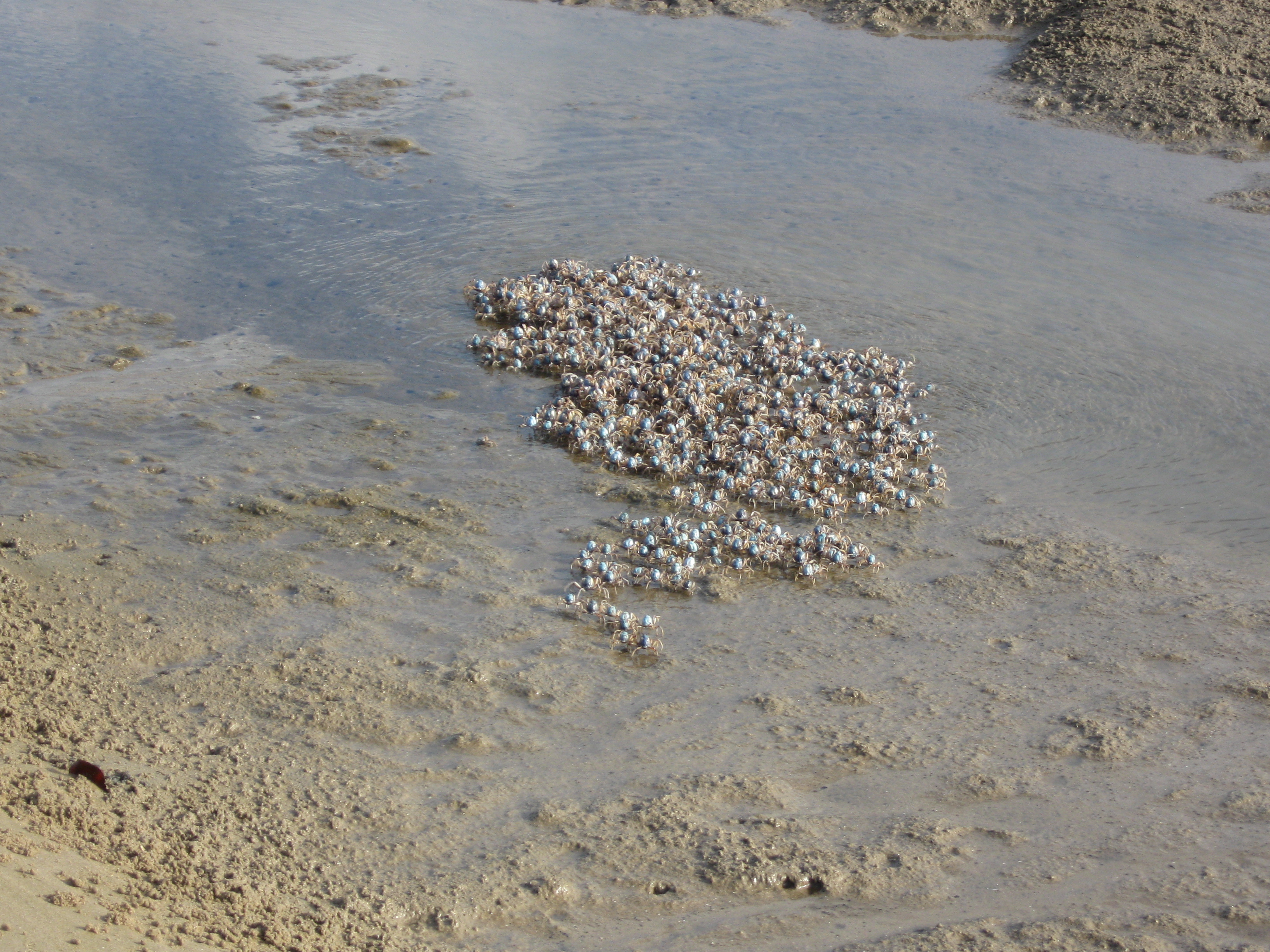 out on the spit are soldier crabs. The soldier crabs all move as a group and go on manouvers across the spit.