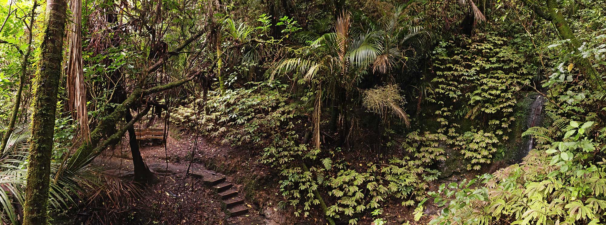These are the interests that determined my choice of residence when I returned to Auckland University from Hawke's Bay, combined of course, with the general quietude afforded by these natural surroundings, a very important thing where long periods of study are involved. So here I reside, in the rainforest, surrounded by birds, trees, and orchids, with a short walk through the bush to any of three beaches. Incredibly, this paradise is not in some remote hinterland, but is within a 30 minute drive of the centre of New Zealand's largest city. Here, on the doorstep of the Waitakere Ranges Regional Park, is Titirangi.