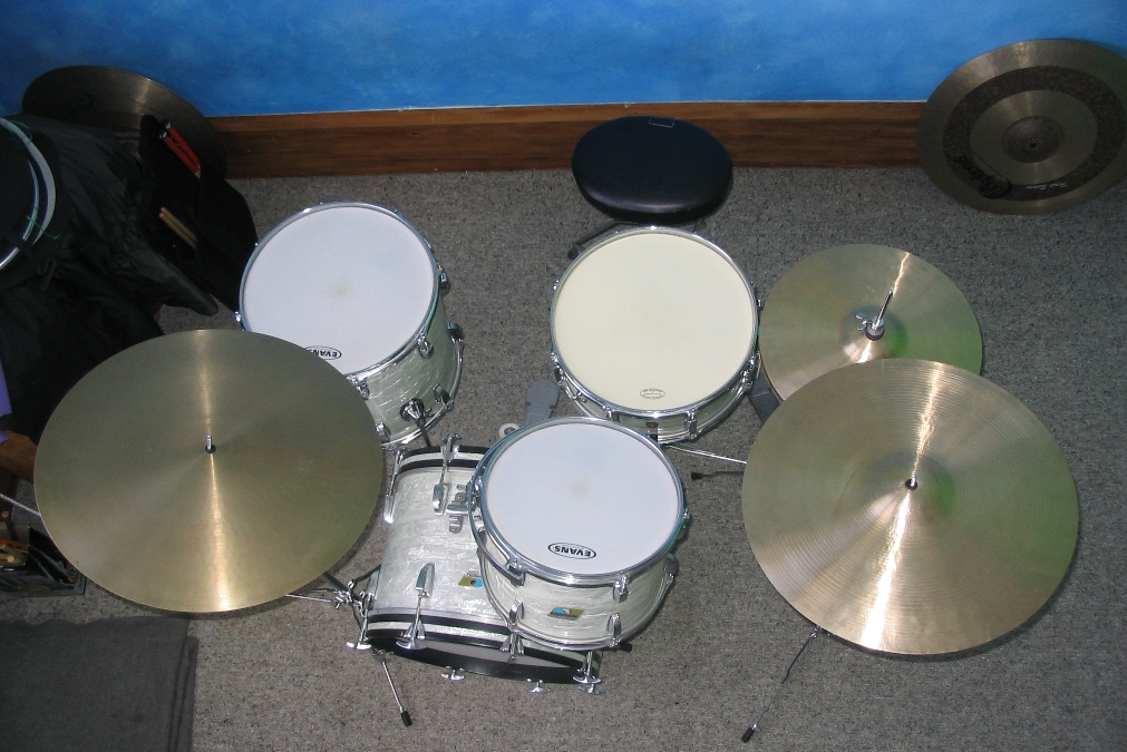 1969 Ludwig Jazzette with 1963 Jazz Festival snare; Bosphorus Antique Cymbals 21 Original ride, 16 thin crash, 13 regular hats
